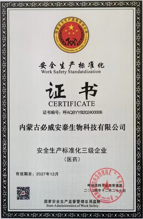 內(nèi)蒙古必威安泰生物科技有限公司成立于2008年6月,位于呼和浩特市和林格爾乳業(yè)開發(fā)區(qū),占地123畝,注冊資本1.25億元。公司專注于生物疫苗研發(fā)生產(chǎn),是原農(nóng)業(yè)部批準的首家采用細胞懸浮培養(yǎng)技術生產(chǎn)口蹄疫疫苗的企業(yè),擁有兩條7550升德國進口懸浮培養(yǎng)生產(chǎn)線,年產(chǎn)能20億毫升,覆蓋多種動物疫苗。公司被認定為自治區(qū)“企業(yè)研發(fā)中心"“重點龍頭企業(yè)單位”“企業(yè)技術中心"和國家"高新技術企業(yè)”,“口蹄疫基因標記疫苗”獲全國商業(yè)科技進步一等獎。2024年,瑞普生物控股后,公司構建全生命周期質量管控體系,獲多項國際權威認證,包括ISO9001、ISO14001、ISO45001、ISO5001及獸藥GMP、CNAS、GCP、GSP等。